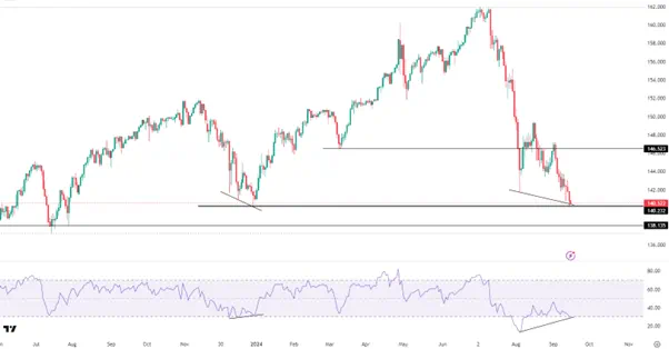 /日承受着美国降息和日本加息的双重影响,汇价短线恐继续承压考验140.20的附近的首要支撑,其次是138一线。