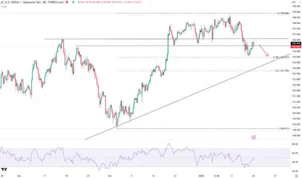 日本央行将于1月24日公布利率决议。在日本通胀回升和工资持续增长的背景下,目前市场对于本周加息的押注升高至80%。不过由于特朗普本周上任,也有分析认为3月是更合理的加息时间点。一旦央行维持利率不变,美/日有望显著反弹。