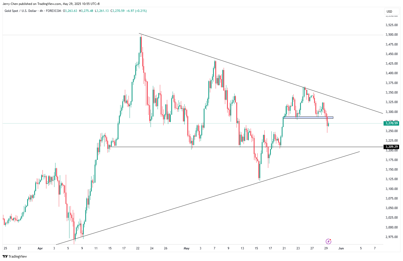 XAUUSD 4小时 来源:Tradingview