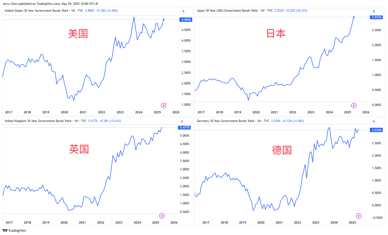 主要经济体30年期国债收益率 来源:Tradingview