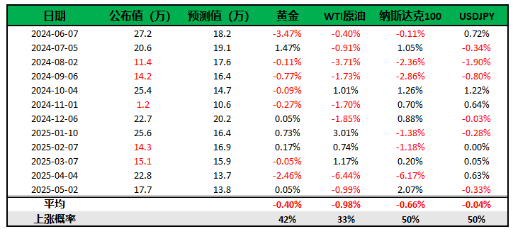 图:过去12次非农数据以及当日市场表现
